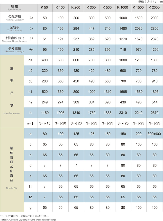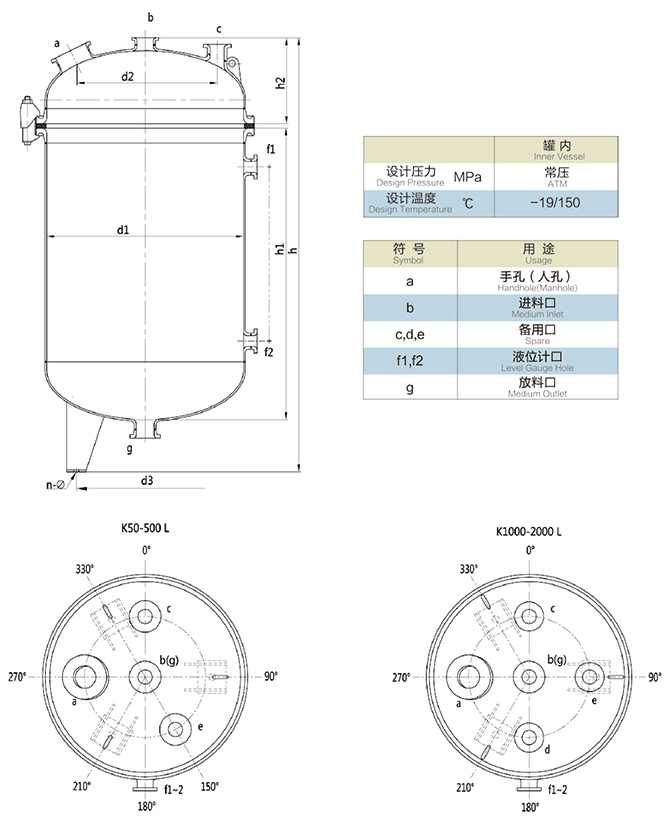 2.搪玻璃開式反應(yīng)釜參數(shù)表