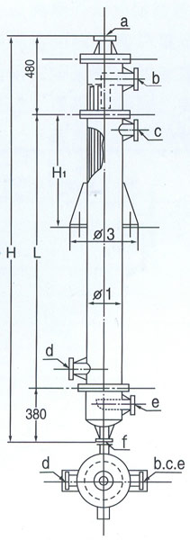 d-冷卻水進(jìn) e-尾氣出口 f-成品出口