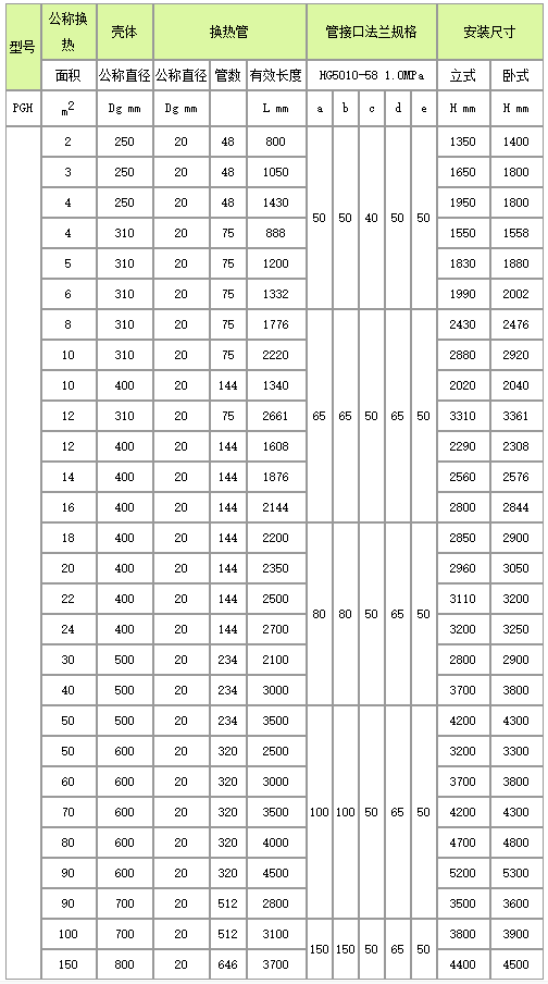 管口使用表: a.介質(zhì)入口或出口;b.介質(zhì)入口或出口;c.冷卻水入口;d.冷卻水出口;e.排凈口