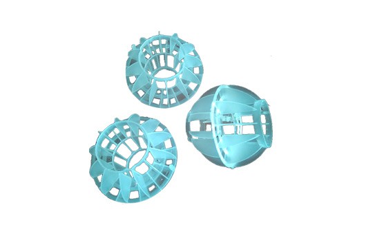 聚丙烯空心球氣速高,葉片多,阻力小;比表面積大,可充分解決氣液交換;具有阻力小操作彈性大等特點。廣泛應(yīng)用于除氯氣、 除氧氣、除二氧化碳氣等環(huán)保設(shè)備中。采用聚丙烯塑料制成球狀,在球中部沿整個周長有一道加固環(huán),環(huán)的上下各有十二片球瓣, 沿中 心軸呈放射形布置,適用于二氯化碳脫氣塔,接觸反應(yīng)塔等裝置。